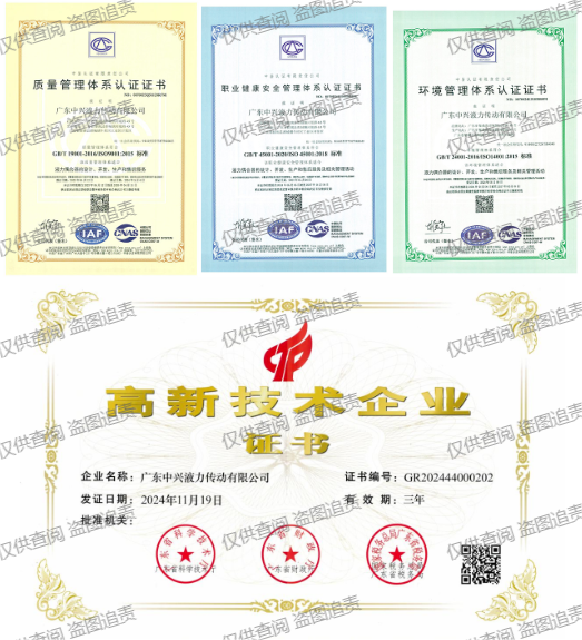 833体育在线直播 作为高新技术企业,始终坚持以质量求生存,以创新求发展。公司目前已获得2023年质量管理体系认证证书、2024年职业健康安全管理体系认证证书、2024年环境管理体系认证证书及2024年高新技术企业证书,体现了公司在产品质量、管理水平和技术创新方面的综合实力。